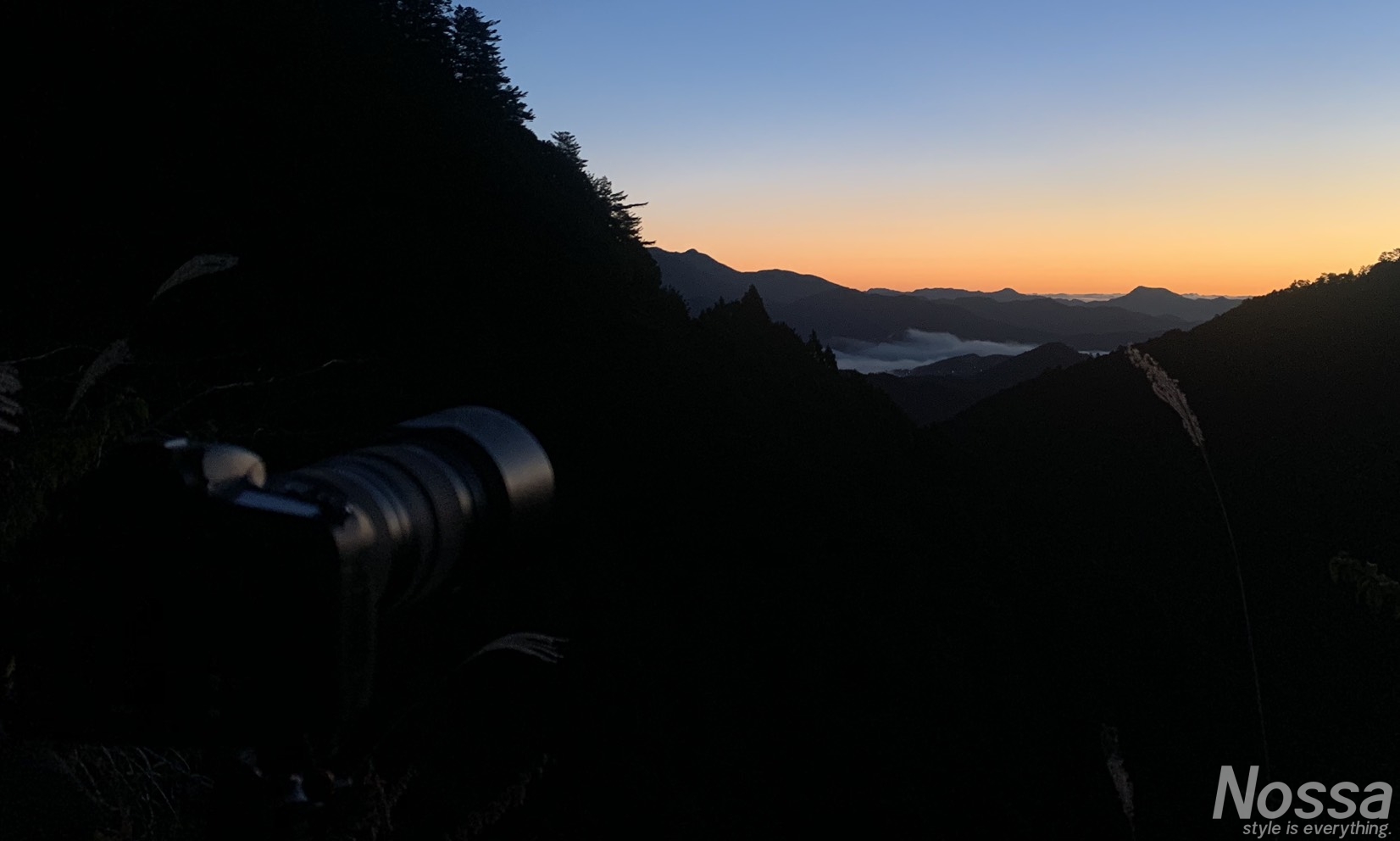 三脚を立てて待機していると、次第に空が明るくなり、うっすらと雲海が見えてきました。
